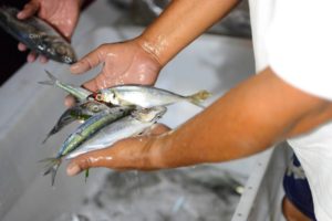 Ci vogliono tanti anni di esperienza per salire a bordo di quella piccola imbarcazione di legno, guidare la Lampara sul mare cristallino del Cilento e catturare l’attenzione di banchi interi di pesce azzurro. La Coopertiva Cilento Mare ha Marco, uno che ne ha viste tante lungo la costa del Mito. E ora insegna ai più giovani come manovrare la Lampara e soprattutto dove andare per non tornare sulla spiaggia a mani vuote. Marco al centro con il lume e attorno a lui ci girano Gerardo, Fransisco, Raffaele, Antonio e un altro Gerardo. Giovani e meno giovani, gettano in mare una grossa rete che si stringe sott’acqua fino a diventare un sacco. Una trappola per alici, polpi, triglie e con un po’ di fortuna anche di ricciole, barracuda e pesci serra. Inizia così una delle esperienze più sensazionali che i turisti possono vivere a Marina di Camerota.